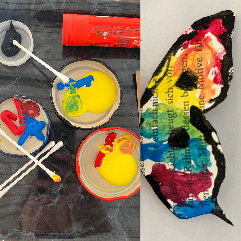 Und aus der Raupe wurde ein wunderschöner Schmetterling… Diese Woche haben wir in der Spielgruppe viele bunte Schmetterlinge gebastelt.