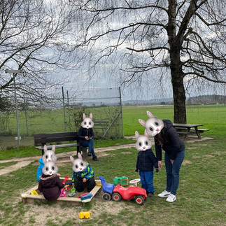 Bei der Storchensiedlung haben wir unsere Spielzeit verbracht. Es gibt einen kleinen Spielplatz, einen Bach und natürlich kann man die Störche und Enten beobachten.